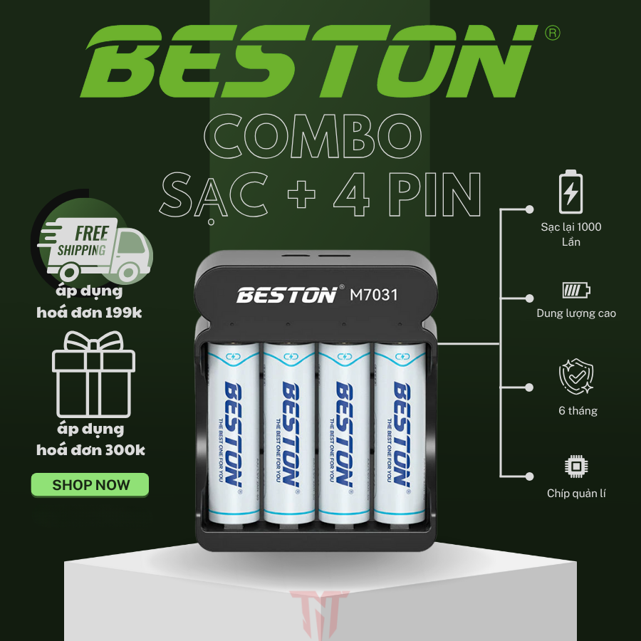Sạc pin Beston M7031 có 4 khe sạc cho pin AA/AAA, cho phép bạn sạc cùng lúc nhiều pin, tiết kiệm thời gian và công sức. Đầu vào của sạc nhanh M7031 là 5V/1A, trong khi đầu ra có thể đạt tới Pin 2A 1.5V/1A (tối đa), Pin 3A 1.5V/0.5A (tối đa), giúp sạc nhanh chóng và hiệu quả.