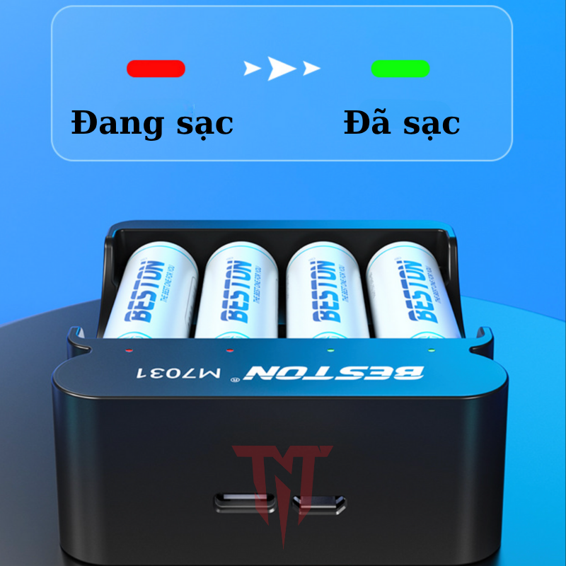 Sạc pin Beston M7031 có 4 khe sạc cho pin AA/AAA, cho phép bạn sạc cùng lúc nhiều pin, tiết kiệm thời gian và công sức. Đầu vào của sạc nhanh M7031 là 5V/1A, trong khi đầu ra có thể đạt tới Pin 2A 1.5V/1A (tối đa), Pin 3A 1.5V/0.5A (tối đa), giúp sạc nhanh chóng và hiệu quả.